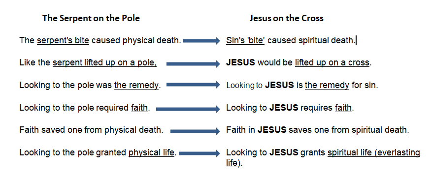 The fiery serpents quickly got their attention and changed their ungrateful attitude. They repented and went to Moses, seeking deliverance. Moses went to the Lord and He gave them the antidote. “Make a fiery serpent, and set it on a pole; and it shall be that everyone who is bitten, when he looks at it, shall live” (Num. 21:8).